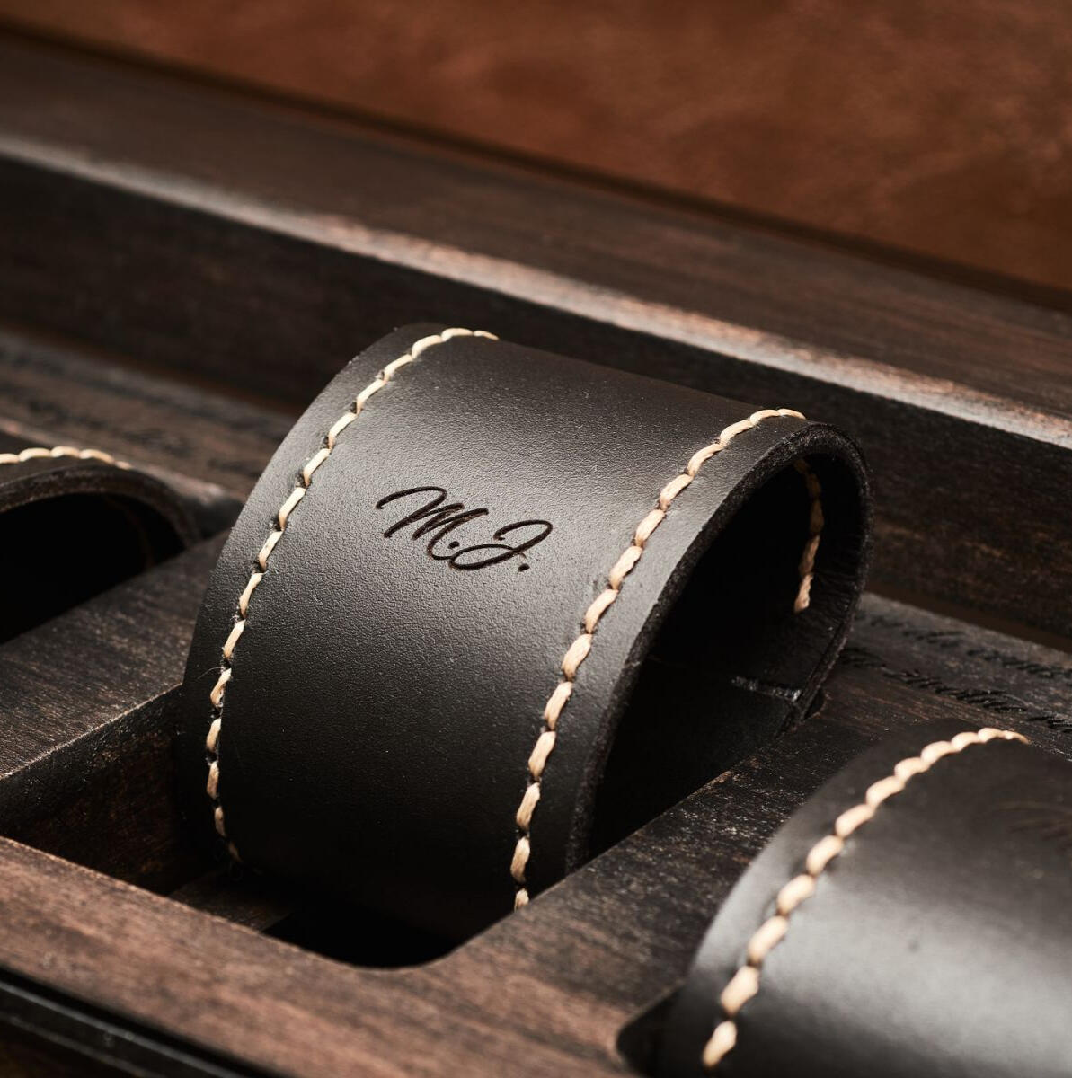 Crafted from beech wood, this elegant watch box is distinguished by its exceptional durability and classic elegance. The meticulously hand-cut leather adds a touch of luxury, providing the utmost protection for your valued watches. This item exemplifies the perfect blend of craftsmanship, functionality, and extraordinary talent.